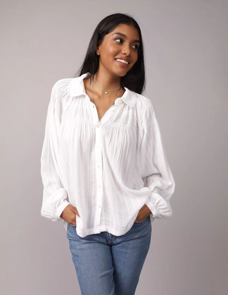 MujerTops MujerCamisas Y Blusas MujerBlusa Ae con Lazo Mangas Abombadas y Cuello