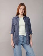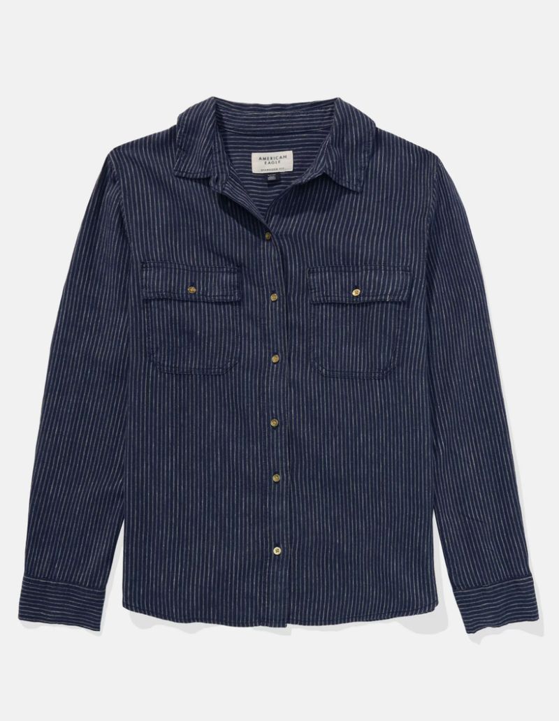 Camisa AE Manga Larga de Mezcla de Lino con Botones Estilo Fin de Semana