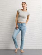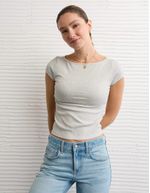 • Una versión femenina de la playera corta, con un clásico cuello redondo y una silueta ceñida.